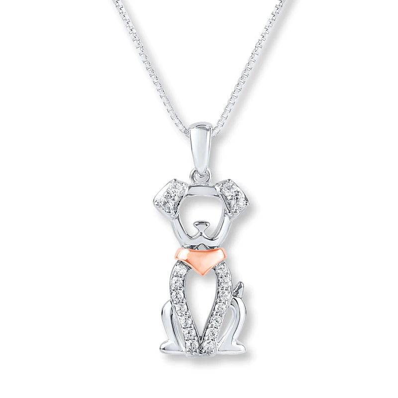 Lab-created white sapphires decorate the ears and legs of a playful pooch on this darling necklace for her. Crafted of sterling silver, the pendant features a 10K rose gold bandana. The 18-inch box chain secures with a lobster clasp.