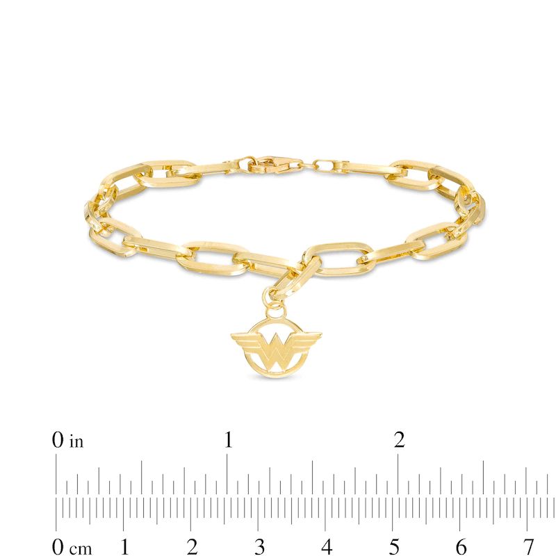 Add a hint of heroic detail to your look with this logo charm bracelet.