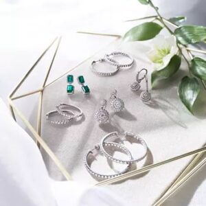 Tremendous sparkle radiates from these stunning round-shape diamond halo drop earrings exquisitely fashioned in luxurious sterling silver.
