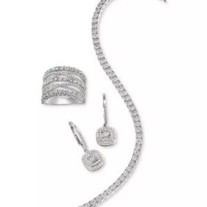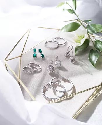 Diamond Halo Drop Earrings (1/2 ct. t.w.) in Sterling Silver, 14k Rose Gold Sterling Silver & 15k Gold Sterling Silver.
