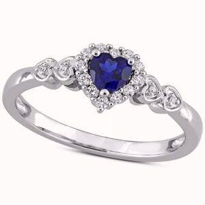 Blue Sapphire (1/4 ct. t.w.), White Sapphire (1/8 ct. t.w.), & Diamond Accent Heart Ring in Sterling Silver